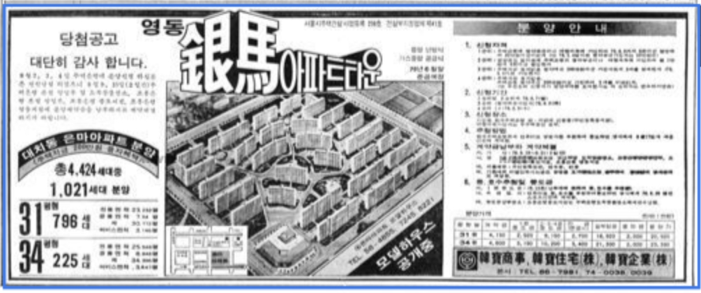 요즘 옛날 기사를 하나씩 보곤 하는데...요즘 서울의 대표 아파트로 부르는 대치동 은마아파트 당첨공고 내용을 보게되었습니다. 분양가가 얼마였을까요? 당첨자발표 공고가 신문에 났었는데