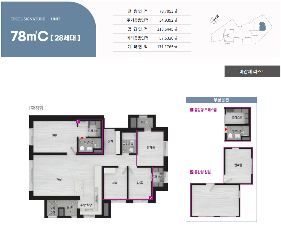 단지 자체도 43층 높이의 초고층 설계로 천안 도심 스카이라인을 새롭게 그립니다. 전용 78㎡·84㎡ 중심의 실속형 평면과 146㎡·152㎡ 펜트하우스까지, 실거주와 프리미엄 수요를 동시에 만족시키는 구조입니다. 전 세대 남향 위주 배치, 4BAY 판상형 구조, 와이드 거실과 알파룸 제공 등 최신 주거 트렌드가 모두 반영됐습니다.